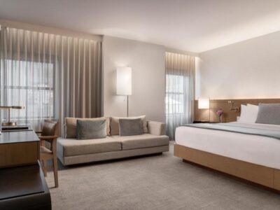 Today, the hotel features 330 stylish guest rooms, including 27 suites, each designed with contemporary comfort and refined finishes that reflect its historic character. Spacious layouts, modern technology, and thoughtful details create a welcoming and sophisticated atmosphere for travelers.