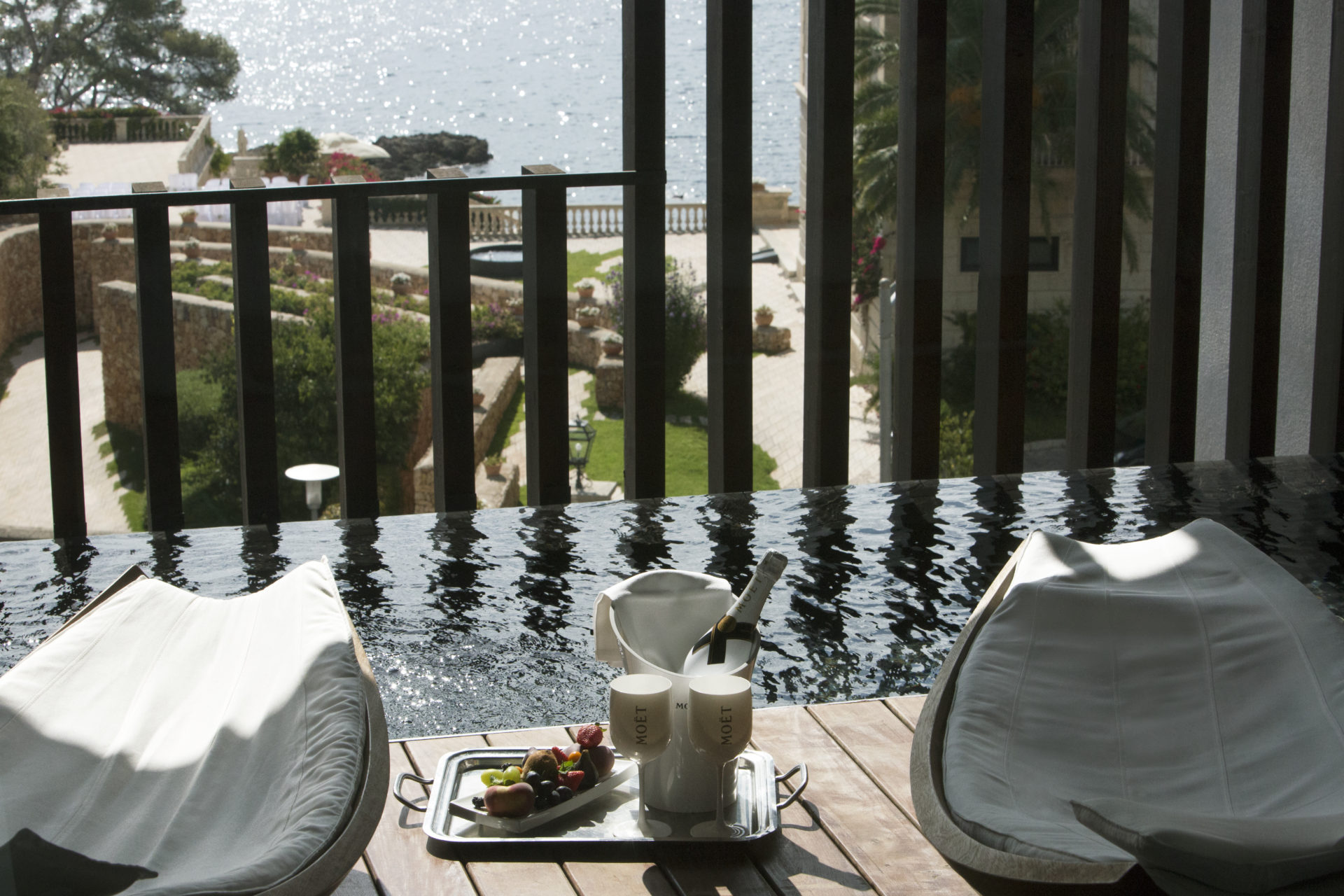 Start your day with a gourmet treat and continue towards boundless horizons while floating in the pool ,and a cocktail at the bar over looking the Mediterranean.
