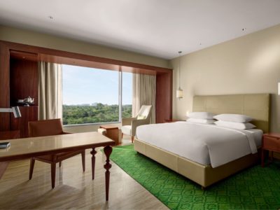 Park Hyatt Chennai is one of the most luxurious hotels in the city located just 15 minutes away from the Chennai international airport and overlooking the Guindy National Park. It is a silent retreat in the midst of this bustling metro city. Its 200 indulgent newly renovated guestrooms include 20 lavish suites with elegant interiors and beautiful views of the city and the forest reserve. The rooms and suites are amongst the largest in the city and are thoughtfully designed to delight you with comfort, world-class amenities and personalized luxury.